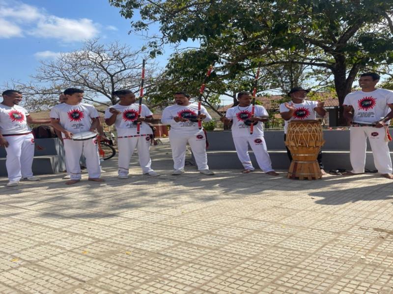 Leandro Ferreira realizando o “Roda de Capoeira na Praça”